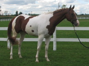Poca, jument paint horse enregistré née en 2008 mesure présentement 15.3mains. Elle a de superbes allures naturelles et en avant. Elle change même de pieds naturellement et elle a commencé à sauter des petits sauts où elle démontre une belle attitude positive à l’obstacle. Cette jument sera se faire remarquer dans le ring de chasseur l’année prochaine ou comme cheval de plaisance!